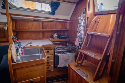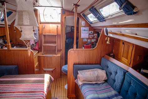 Expect simple comforts: two double cabins (fore and aft), cozy saloon couches for extra sleeping space, a functioning galley, and reliable safety gear for ocean passages. Wifi is available both at sea and in port so you can stay connected—or disconnect completely.