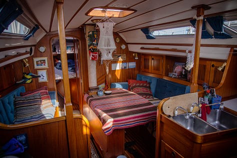 Ocean-Ready Safety Gear – Full safety equipment onboard, including life vests, harnesses, InReach, and liferaft.