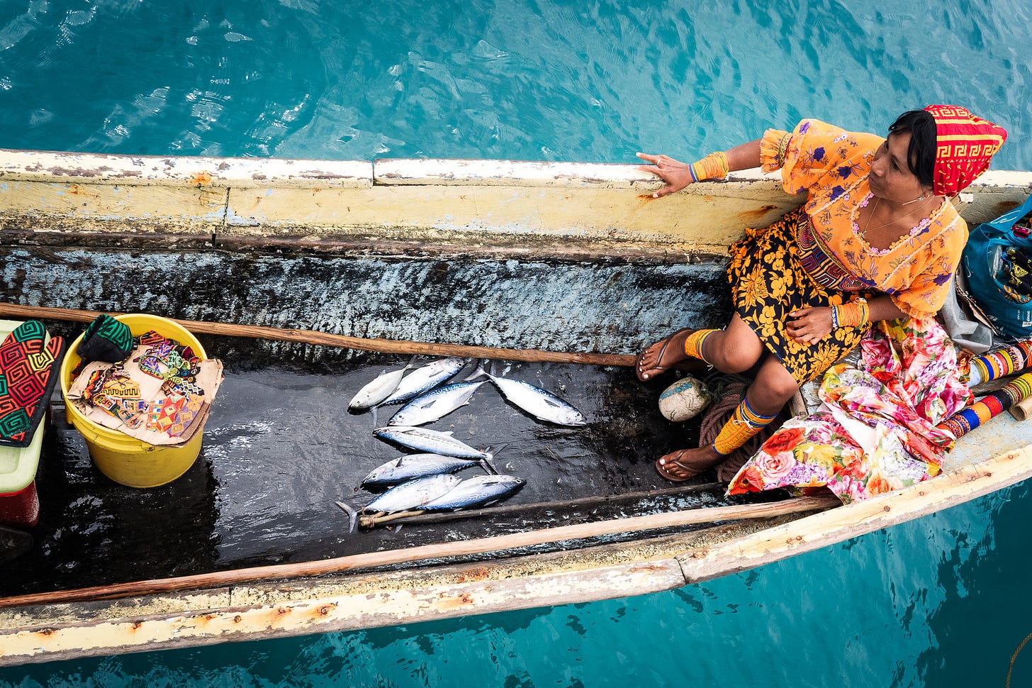 On this particular day, however, I surrendered to my old identity, and bought a freshly caught tuna from the Guna ladies who came to our boat on a cayuco, offering a much more impressive catch as well as their traditional mola tapestry—layered, handwoven textiles that are only produced here.